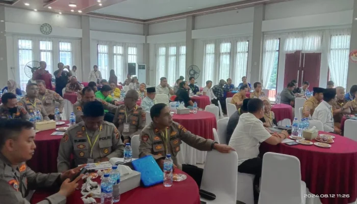 Sarolangun – Pihak Kepolisian Resort Sarolangun melaksanakan Rapat Kordinasi Lintas Sektoral dalam rangka pengamanan Pilkada Serentak di Kabupaten Sarolangun tahun 2024. Rapat kordinasi tersebut dipimpin langsung Kapolres Sarolangun AKBP Budi Prasetya, S.IK, M. Si, bertempat diruang Aula Nafiti Hotel, Senin, (12/8/2024).