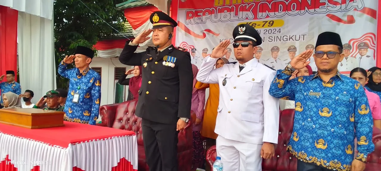 Bertindak sebagai Inspektur Upacara, Kapolsek Pelawan Singkut AKP Amran SH ,bertempat dihalaman Kantor Kecamatan Singkut ,Sabtu 17/8/2024.
