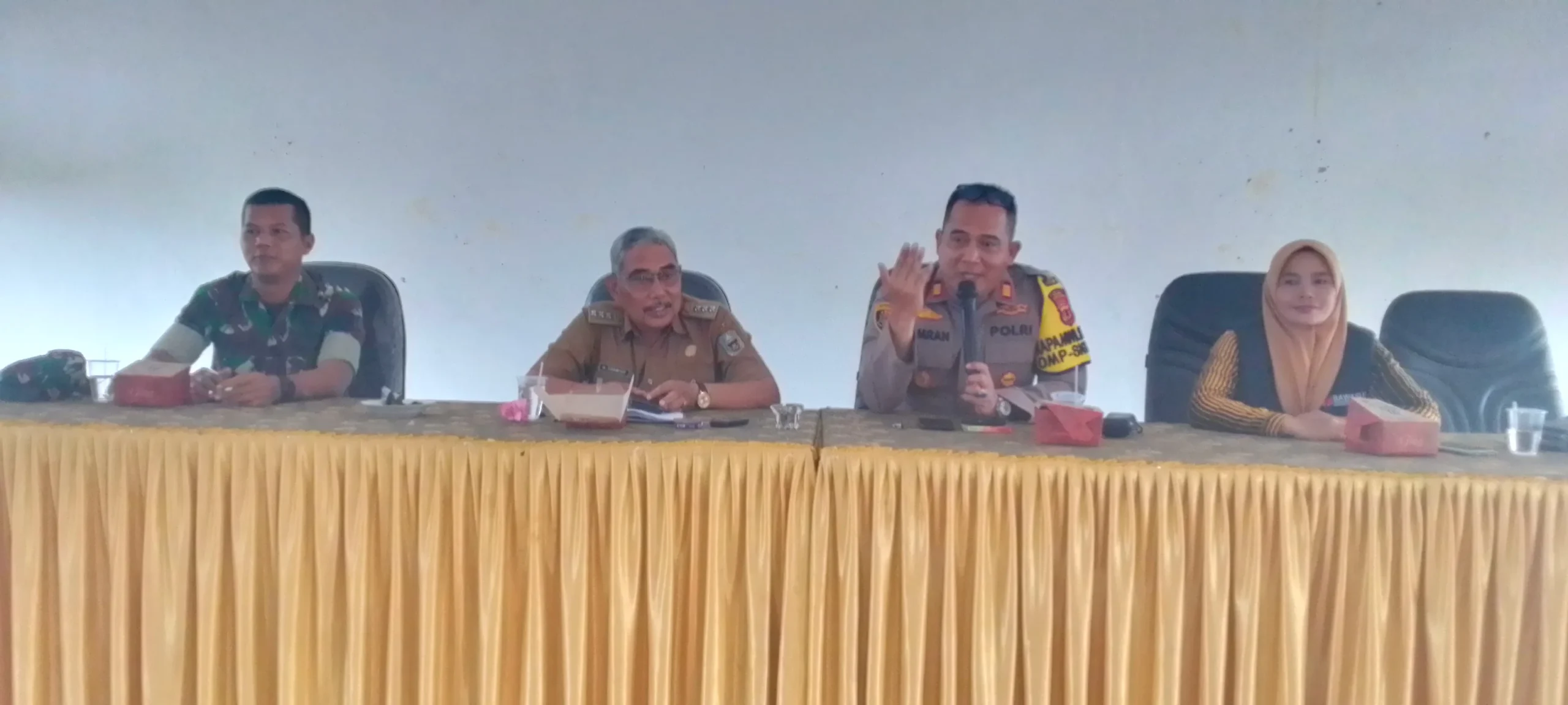 Pelawan – Kapolsek Pelawan Singkut AKP Amran SH saat menghadiri rapat kordinasi Kepala Desa( Kades). Lintas sektoral dalam menghadapi Pemilukada Serentak tahun 2024 di Kantor Kecamatan Pelamwan ,Selasa siang (3/09/2024).