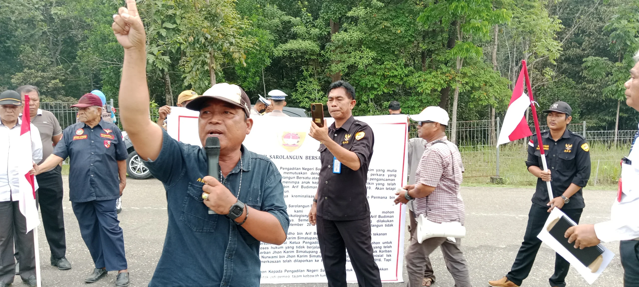 Kedatangan belasan aktivis LSM yang tergabung dalam Aliansi Sarolangun Bersatu ke Pengadilan Negeri Sarolangun meminta ketua PN Sarolangun yang mengadili perkara terhadap Ahmad Sodikin yang terjerat UU ITE dalam kasus pengancaman diadili seadil-adilnya.