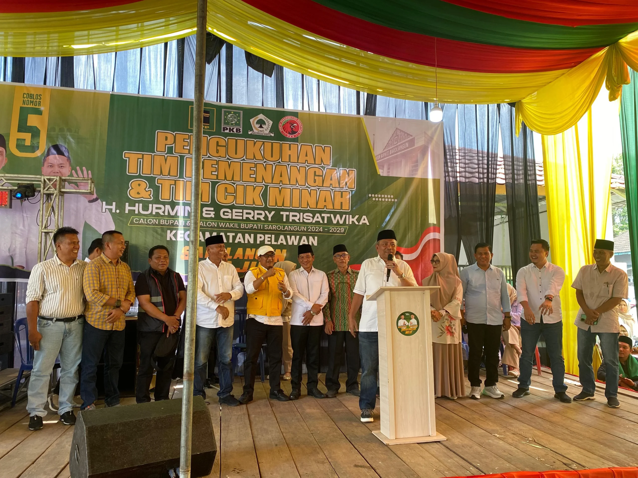 SAROLANGUN – H.Muhammad Syaihu atau yang akrab disapa HMS Ketua Pimcab PKN Kabupaten Sarolangun, yang juga Ketua Tim Koalisi Partai Pemenangan Calon Bupati dan Wakil Bupati Sarolangun Hurmin-Gerry Trisatwika, dalam acara pengukuhan tim pemenangan dan tim Cik Minah Hurmin-Gerry dikediaman pribadinya di Desa Pelawan Kecamatan Pelawan, Rabu (02/10/2024) dengan tegas menyampaikan arah dukungannya ke pasangan Hurmin-Gerry.