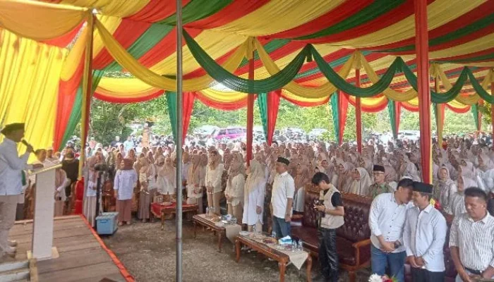 Pantauan dilapangan, sejak pagi hari kediaman HMS sudah dipadati ribuan massa dari 14 Desa yang ada di Kecamatan Pelawan, terdiri dari Korcam, Kordes dan Tim Cik Minah yang membawa ratusan massa dari Desa masing-masing.