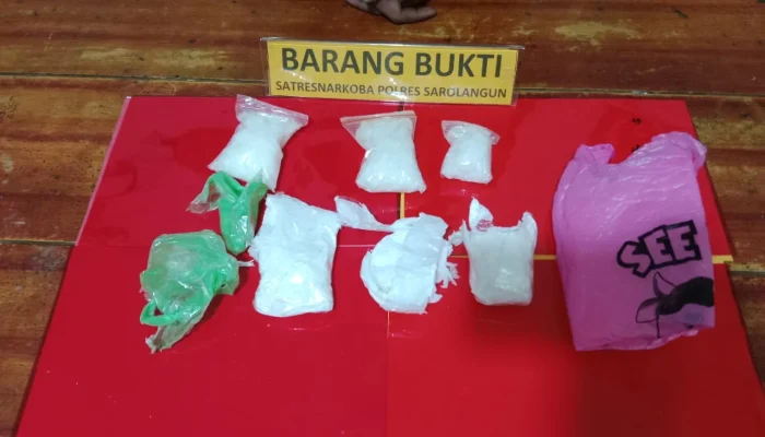Tim Rajawali Opsnal Satuan Resnarkoba Polres Sarolangun berhasil menyita barang bukti 3 (tiga) plastik klip berisikan serbuk kristal diduga narkotika jenis sabu, 3 (tiga) potongan tisu, 2 (dua) potongan plastik warna hijau, 1 (satu) plastik warna pink dan 1 (satu) unit mobil Inova warna hitam dengan nopol BM 1217 VD.