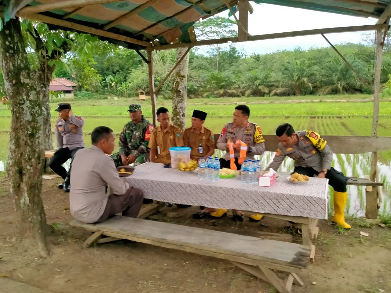SAROLANGUN -Kapolres Sarolangun AKBP Budi Pasetya SIK MSi saat usai melakukan giat penanaman padi dan penebaran seribu bibit ikan patin di Desa Sendang Sari Kecamatan Singkut ,Selasa 5/11/2024 .