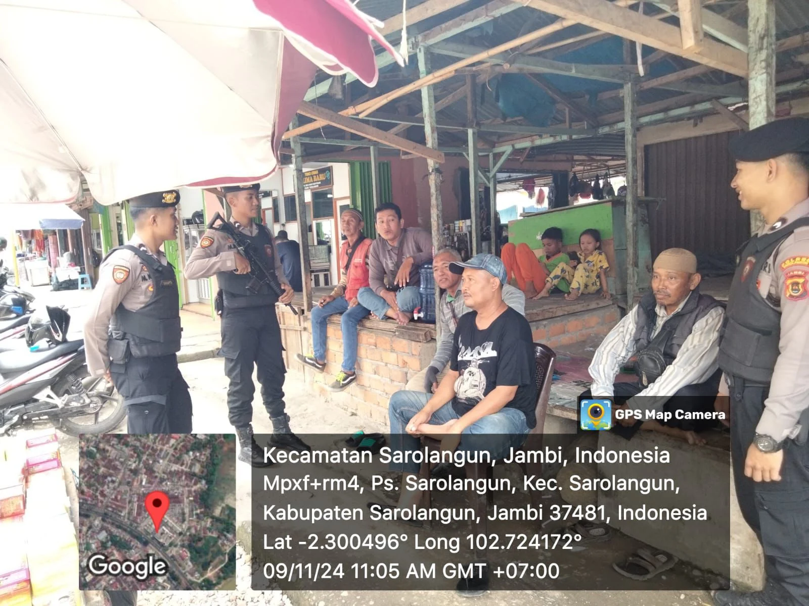 Tim Sat Samapta Polres Sarolangun melaksanakan patroli rutin serta melaksanakan Quick Wins dipimpin Brigadir Roy Fredi Hutabarat ,sekitar pukul 09.30 Wib sampai selesai pada hari Sabtu 9 /11/2024.