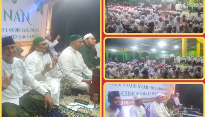 SAROLANGUN – Luar biasa padatnya para jama”ah yang hadir dalam rangka Rutinan Manaqib Syech Abdul Qodir Jaelani dan Harlah Syecher Mania Kecamatan Singkut yang ke 15 .Menghadirkan ulama terkenal Habib Fahmi Assegaf dari Kota Solo Provinsi Jawa Tengah .