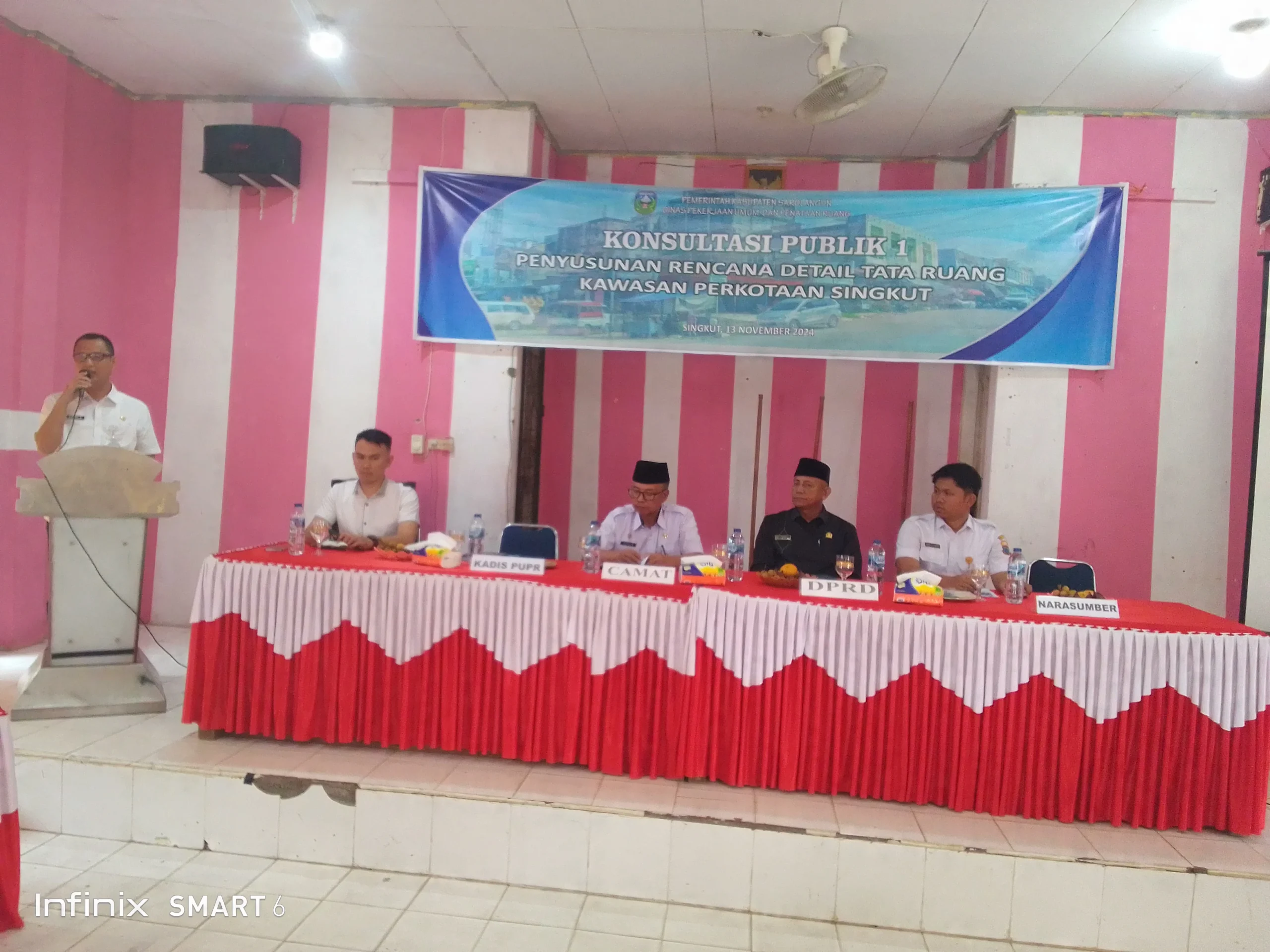Giat Konsultasi Publik 1 RDTR Kawasan Perkotaan Kecamatan Singkut berlangsung lancar dan sukses ,bertempat diruang Aula Kantor Kecamatan Singkut ,13/11/2024.Terlihat hadir Anggota DPRD Kabupaten Sarolangun Bang Nurdin berserta Camat Singkut Drs M.Dahlan , termasuk para pejabat SKPD Pemkab Sarolangun.