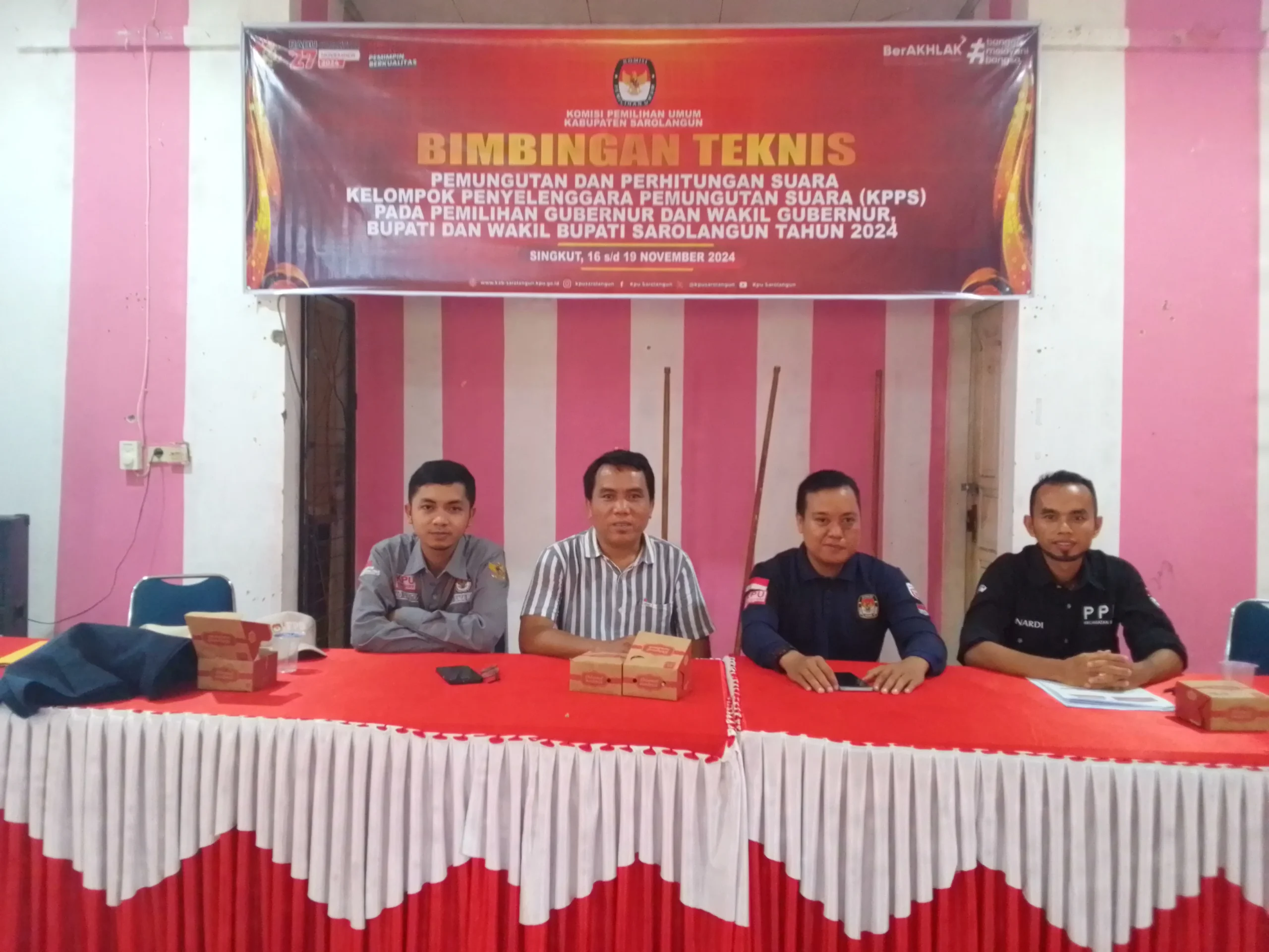 SAROLANGUN -Dalam rangka persiapan Pemilihan Kepala Daerah (Pilkada) Tahun 2024. Komisi Pemilihan Umum (KPU) Kabupaten Sarolangun melalui Panitia Pemilihan Kecamatan (PPK) Singkut .Telah menyelenggarakan Bimbingan Teknis (Bimtek) Pemungutan dan Penghitungan Suara Serta Penggunaan Aplikasi SIREKAP Kelompok Penyelenggara Pemungutan Suara (KPPS) Tingkat Kecamatan Singkut .