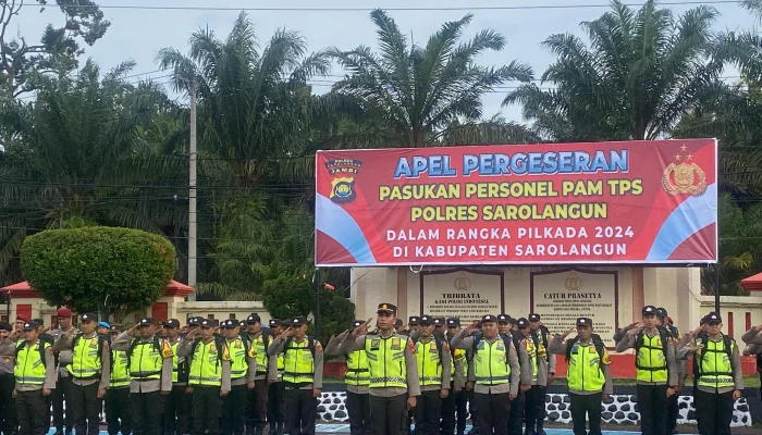 Jajaran Polres Sarolangun telah melaksanakan Apel pergeseran pasukan personil PAM TPS Polres Sarolangun tahun 2024,pada hari Minggu (24/11/24).