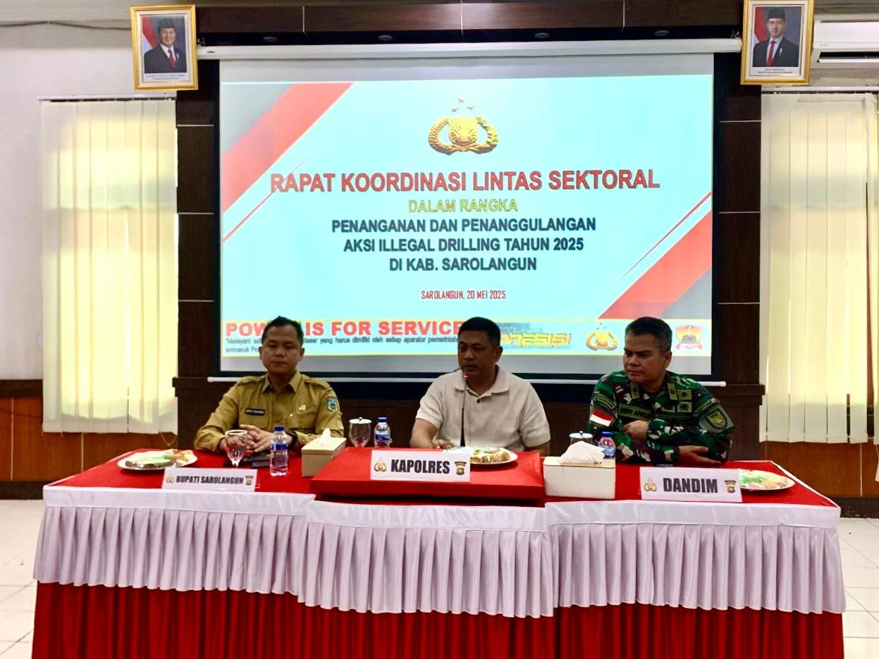Rapat koordinasi lintas sektoral yang melibatkan unsur Forkompinda Kabupaten Sarolangun itu digelar di ruang aula Rupatama Polres Sarolangun pada Selasa (20/05/2025)