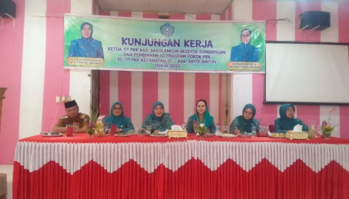SAROLANGUN -Ketua Tim Pengerak PKK Kabupaten Sarolangun Hj Risha Fitria Hurmin SE didampingi Wakil Ketua I TP PKK Kabupaten Sarolangun ,Ratna Shafira NR Gerry SH beserta pengurus .Melakukan kunjungan kerja dalam rangka pembinaan 10 program pokok PKK ke TP PKK Kecamatan se- Kabupaten Sarolangun tahun 2025.