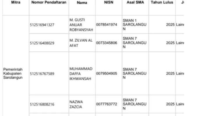 Pada tahun 2025 ini Pemkab Sarolangun memberikan bantuan Beasiswa kepada 5 orang anak untuk melanjutkan kuliah di Universitas ITB, namun 1 orang mengundurkan diri, sehingga hanya 4 orang yang akan berangkat pada tanggal 28 Juli 2025 mendatang.