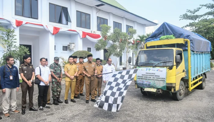 SAROLANGUN- Bupati Sarolangun H Hurmin melepas secara langsung distribusi bantuan pangan dalam penyaluran cadangan beras Pemerintah Kabupaten Sarolangun Tahun 2025, pada Senin (28/07/2025) di Halaman Kantor Bupati Sarolangun.