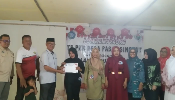 SAROLANGUN POST – Camat Singkut Drs H.M.Dahlan bersama Ketua TP PKK Kecamatan Singkut Ny Suryani Dahlan menghadiri perlombaan Karaoke Gebyar HUT RI 80 tahun 2025 di Desa Pasar Singkut ,Sabtu 23 Agustus 2025.