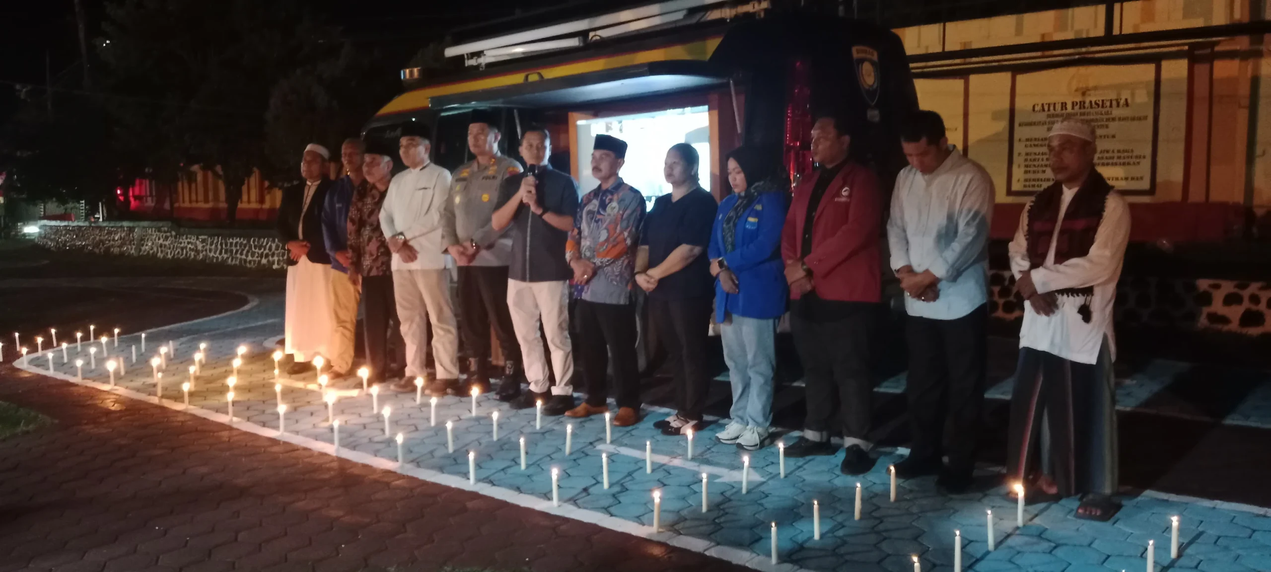 SAROLANGUN – Bertempat di Lapangan Mapolres Sarolangun Desa Simpang Bukit Kecamatan Pelawan, ratusan orang yang terdiri dari jajaran Polres Sarolangun, forkopimda, tokoh agama, tokoh masyarakat, ojol, mahasiswa mengelar Deklarasi damai 1000 lebih lilin pada Minggu (31/08/2025) malam.