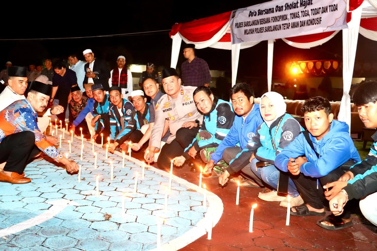 Dalam aksi tersebut, para pengemudi ojol bersama Ketua DPRD Ahmad Jani, Wabup Sarolangun Gerry Trisatwika, Ketua PN Novarina Manurung, S.H., Kamenag H.M. Syatar dan sejumlah personil Polres Sarolangun melakukan doa bersama dan menyalakan lilin di halaman Mapolres Sarolangun, sebelumnya siang hari mereka juga menggelar salat Hajat di Masjid Asmaul Husna-99.