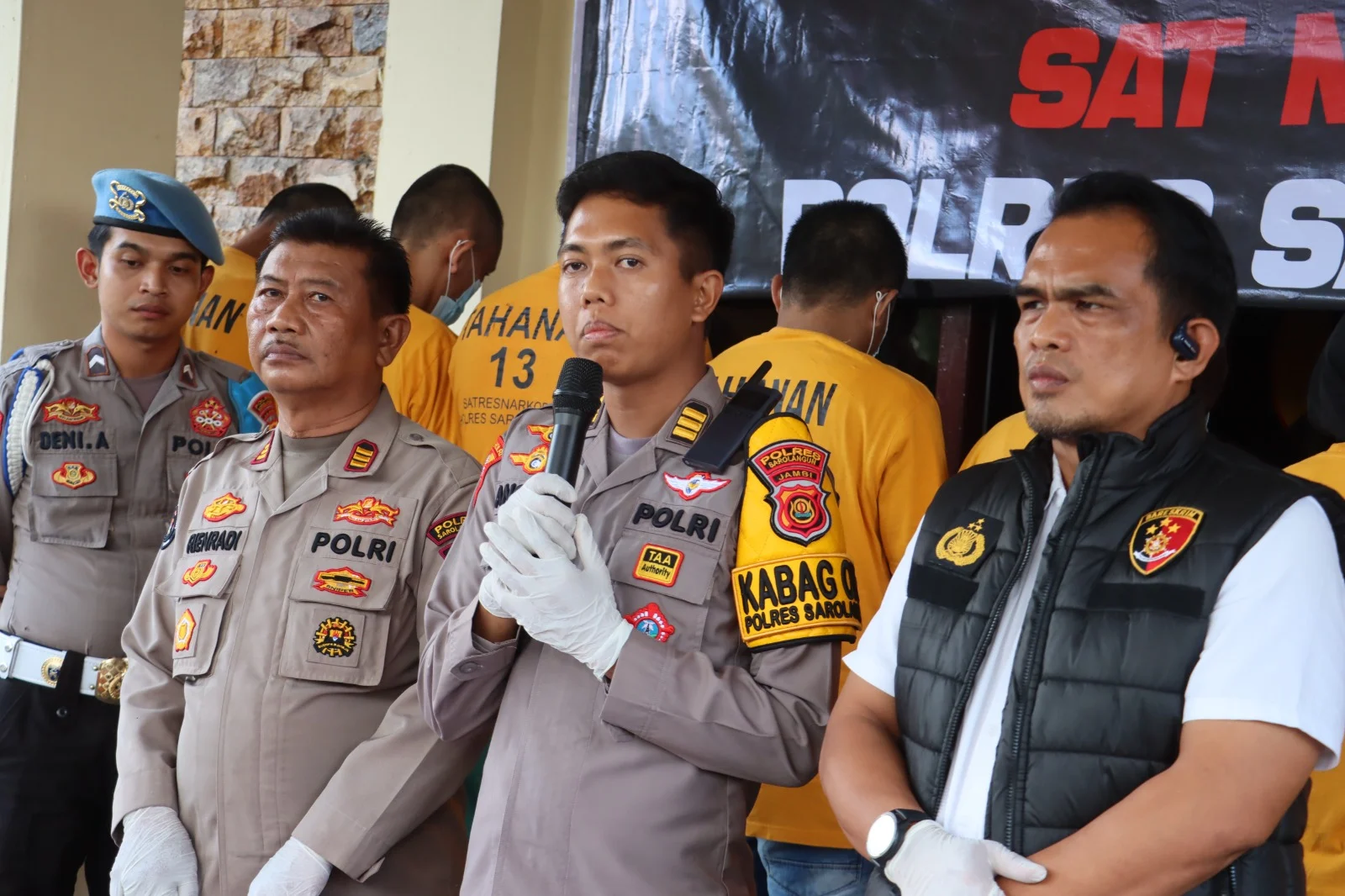 ” Para tersangka memiliki peran berbeda dalam jaringan peredaran narkoba, mulai dari bandar, kurir, pengedar, hingga pengguna. Dari jumlah tersebut, tersangka Tidak Ada direkomendasikan untuk menjalani rehabilitasi atau naik ketahap Sidik” terang Kapolres Sarolangun  AKBP AKBP Wendi Oktariqnsyah SIK MH melalui Kabag Ops Polres Sarolangun  AKP Angga Luviyanto, MH.